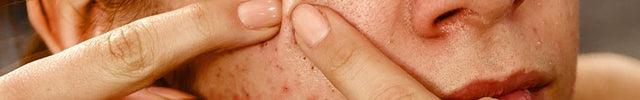 Acne occurs when the pores of the skin become blocked with oil, dead skin, or bacteria.